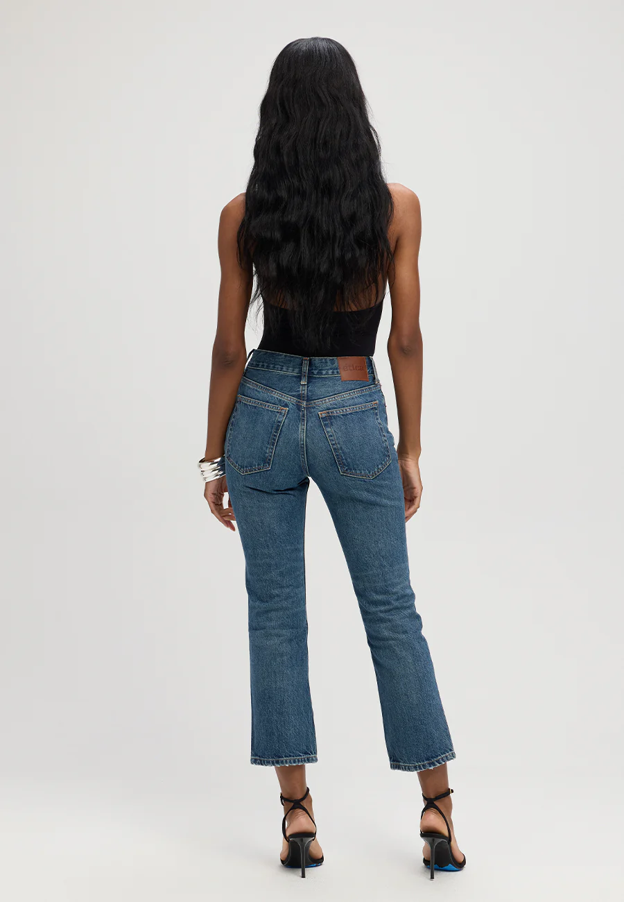 Your everyday slim straight. Sits at the natural waist with a clean fit through the hip and thigh, finishing in a slightly cropped, tapered leg. Polished enough for the office, easy enough for every day. The French-girl jean you’ll keep in rotation.